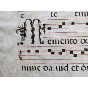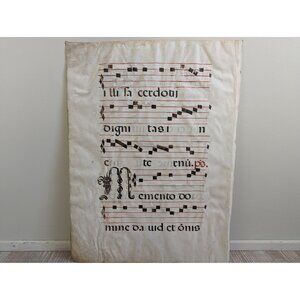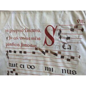 Large Medieval 20 x 26" Antiphonal Religious Music Sheet, Statuit ei Dominus
