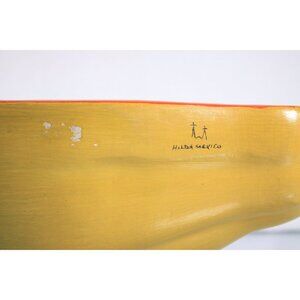 Signed on the side Hilda Mexico, I have not been able to trace down this maker. The piece is 16.5 inches long x 9 inches wide x 4-3/4 inches high.