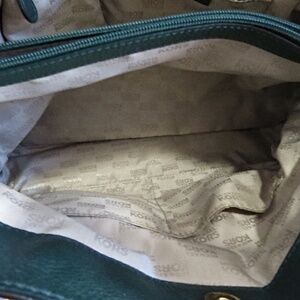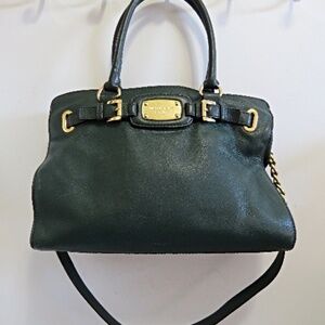 Large Michael Kors Hamilton Leather Bag. Measures approx. 14 across and 9.5 tall. Satchel or Shoulder bag. Gold Hardware. In very clean condition. Please view all photos. there are a couple of light scratches on the bag as seen in the photos.
