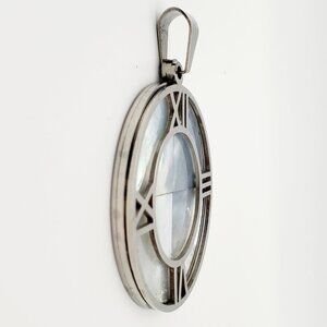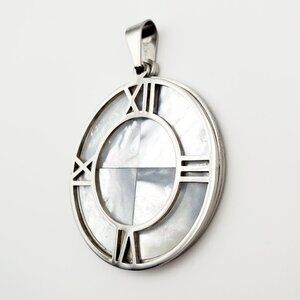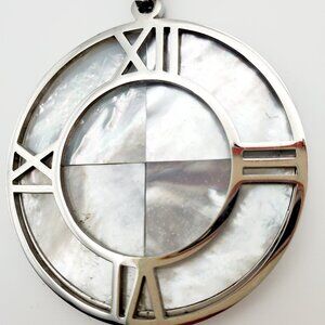 Large Mother of Pearl Clock Silver Pendant Stainless Steel Roman Numerals Sleek