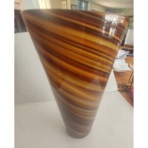 Murano Style Hand Blown Glass Vase Chocolate Swirl 12.5"