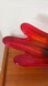 In gradient glass colors, flow from dark red, into deep blue to green and then run out transparently at the star-shaped base.