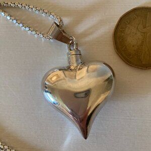 30" Silver (925) Box Chain Large Puff Heart - screws off at top to open