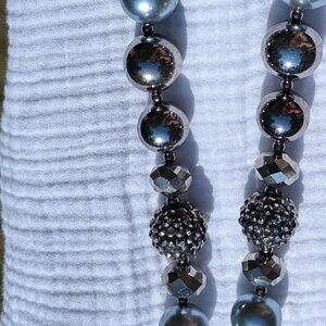 19 " Large Rhinestone Hematite Ball Necklace with big Gray beads1980's Vintage Bling Necklace. Excellent condition.