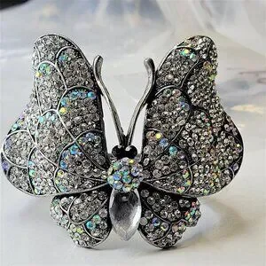 Large Rhinestone Butterfly Hinged Cuff Bracelet