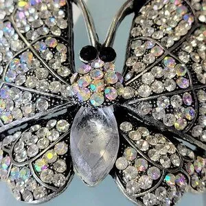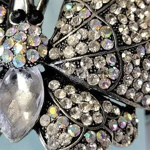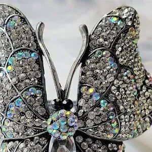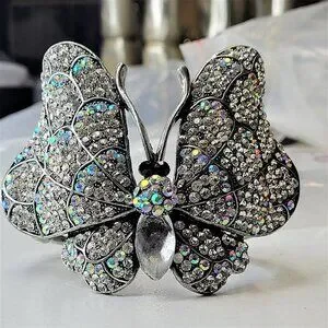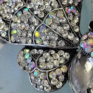 Gorgeous Bold Large Sparkling Rhinestone Butterfly Bracelet adorned with dozens of glittering jewel crystal with a large cloudy frosted bead