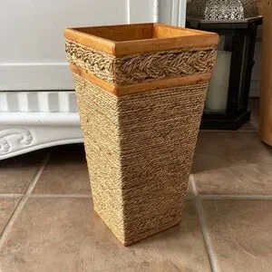 Multi purpose wooden vase planter. In great condition. Vintage wooden rope wrapped planter vase.