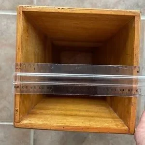 Opening is 6” x 6” and tapers to a base of 4” x 4”