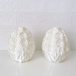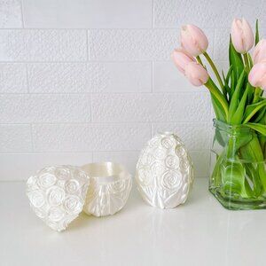 Celebrate Easter, spring, and special occasions with these stunning handmade rose-covered eggs! Each elegant egg splits in half, making it perfect for filling with candy, gifts, or keepsakes. Ideal for Easter baskets, party favors, wedding decor, and unique gift packaging. Satin White Colour.