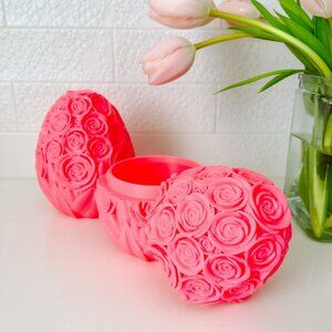 Celebrate Easter, spring, and special occasions with these stunning handmade rose-covered eggs! Each elegant egg splits in half, making it perfect for filling with candy, gifts, or keepsakes. Ideal for Easter baskets, party favors, wedding decor, and unique gift packaging. Bright Pink Colour.