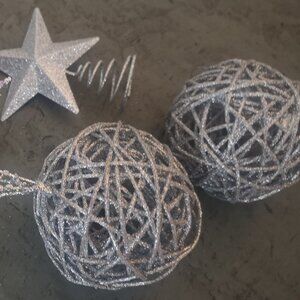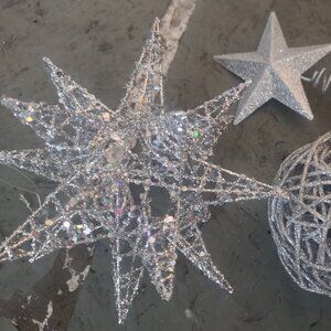 Large Sequin Glitter Star, Tree Topper and Ball Ornaments Decor. Lot of 4 pieces.