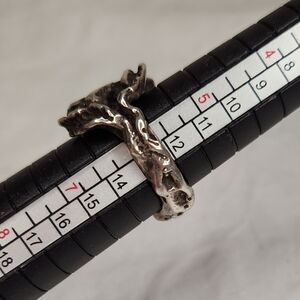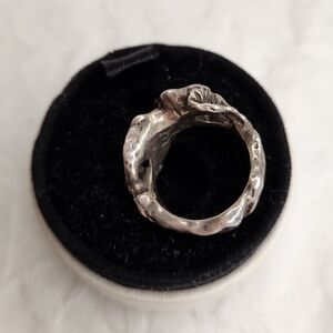 Chunky Solid silver floral bouquet Statement ring with Modernist Brutalist Organic leafy Art design.