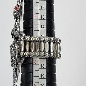 Large Snake Ring with red crystal rhinestone eyes and a bod littered with black and grey rhinestones beads