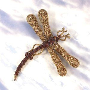Large Statement Dragonfly Brooch in fashion topaz hued rhinestones