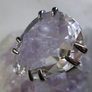 Large teardrop/pear shaped cubic zirconia cocktail/statement ring. Silver Plated metal alloy. Purchased 2008 and never worn.