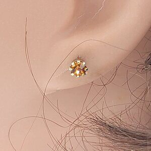 These large facet topaz/amber-coloured glass earrings are a 2 and 1. The large piece can be removed and worn as studs.