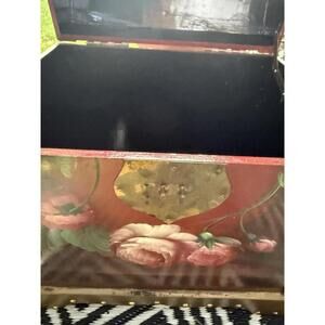 Large Trunk Chest Box Wood Hand painted Floral W/Gold Studs 14.5x11.5x15 in