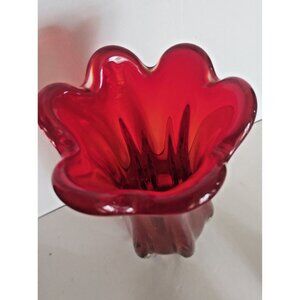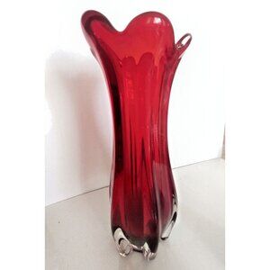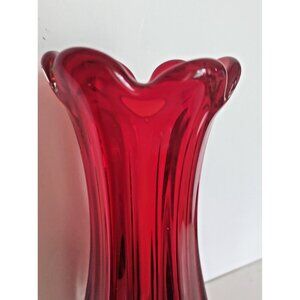 Large Vintage Lorraine Glass Canada Ruby Red Hand Blown Vase 12"