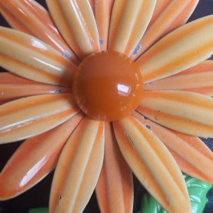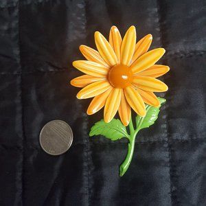 Large vintage brooch, metal and enamel coating. Some chips in the enamel as shown. Quarter for scale.