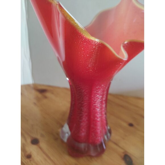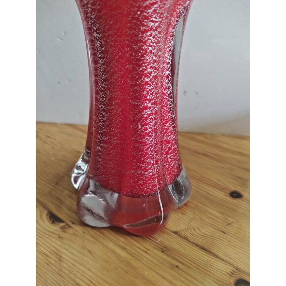 Large Vintage Murano Red Glass Vase Barovier & Toso Silver Leaf Encased 11"