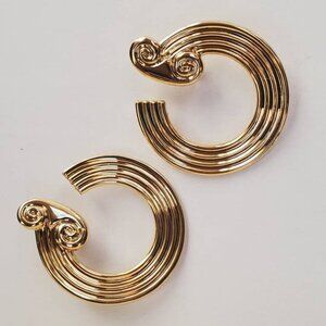 Large Vintage Parklane Goldtone Art Deco Statement Clip-on Earrings