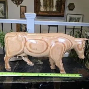 Striking Large Vintage Carved Wooden Bull/Cow Figurine