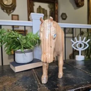 This impressive statue is a superb accent piece for a library shelf, a large mantle, a farmhouse entryway, or as a centerpiece on a coffee table. Its scale and unique aesthetic make it a perfect collectible for lovers of animal art, Mid-Century Modern design, or unique vintage decor.