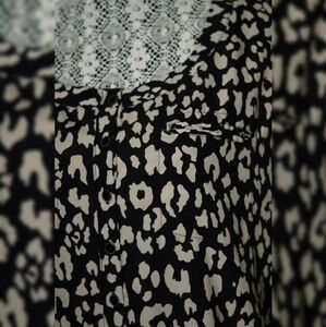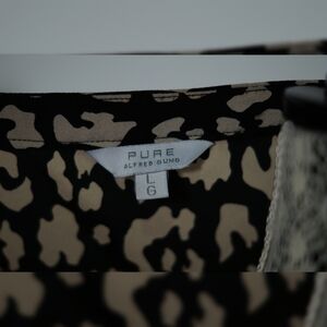 New condition alfred sung button up short sleeve blouse. Can be dress up or dressed down! Black with beige/light tan spots. Size large.