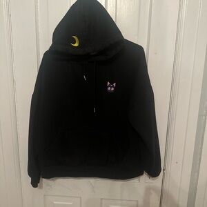 Large black hoodie embroidered with Luna and sailor moon crescent