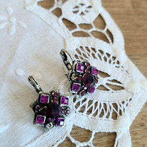 Beautiful earrings with sparkly purple rhinestones. 1'' x 6/8''. Bought it France long time ego. Great condition.