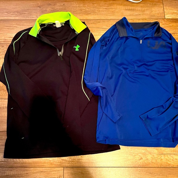 Men’s half zip under armour light weight sweaters in excellent condition. Both size large