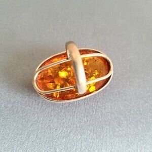 Absolutely stunning large oversized sterling silver cocktail ring with oval Amber stone. About size 7.5-8. (15 mm diameter). Unisex ring. Has no stamp but obviously silver. Great condition.