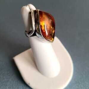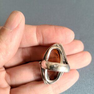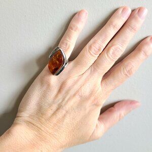 Large oversized vintage sterling silver cocktail ring with Amber stone.