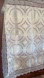 140 cm x 240 cm. Never used. Not sure what the fabric is. Floral design. Very light Cream color. Slight shiny appearance. Lace border.