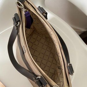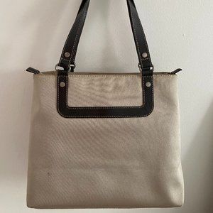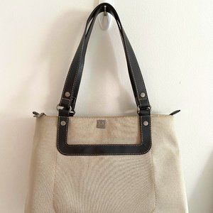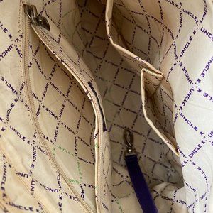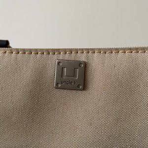 Durable nylon handbag with leather straps, made in Brazil by Uncle K, beige color with details in dark brown leather, lots of space inside, I'm used to carrying all my personal items plus books in it! It has been dry cleaned once but it still carries some old spots, mostly inside. It has been used for 5+ years so considering all, still looks good! :) Uncle K is a Brazilian brand with the same style and materials used by Kipling, Herschel and Kanken bags.