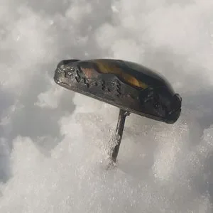 make a statement with this large tiger eye stone ring. set in a landscape of mountains.