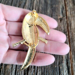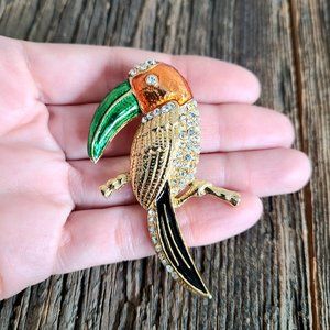 Large vintage parrot brooch/pin with clear white rhinestones.