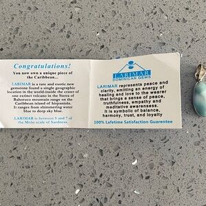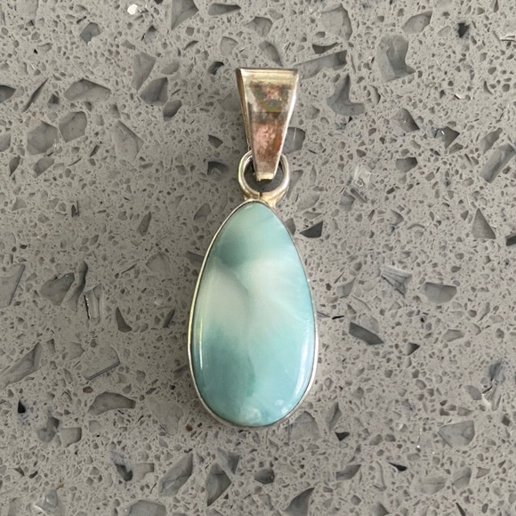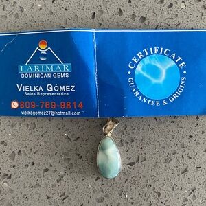 Authentic larimar pendant set in sterling silver. Purchased in Dominican Republic. Never worn Please see images for approximate measurements