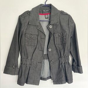 Larry Levine Stretch Dark Gray Denim Peplum Waist Band Jacket