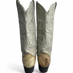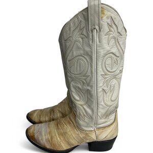 Larry Mahan Leather Ivory Western Biker Cowboy Boots Men's 8.5 D Vintage