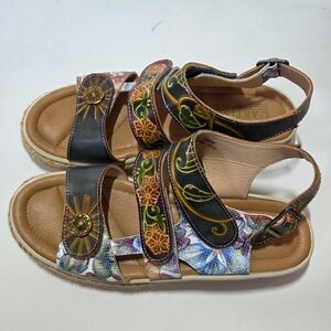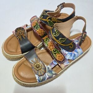 L'artiste Yahima Espadrilles Boho Multicolor Floral Casual Platform Sandal Sz 38