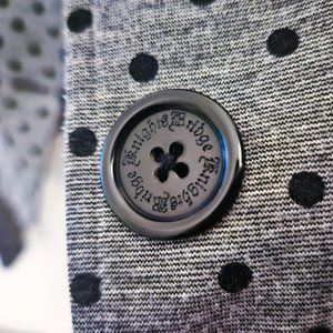 This blazer jacket is something I cherish and can't bear to wear, so it is in excellent condition. The craftsmanship of this blazer is exquisite, and the fabric has a great texture when touched. It is made of 68% rayon, 27% nylon, and 5% spandex. When I purchased this jacket, it came with a matching badge accessory from the same brand for versatile styling options. Made in Taiwan.