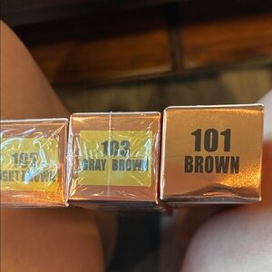 Create stunning brows with Qiciy Tattoo Brow. Long-lasting formula. Perfect for bold definition. 3 pk includes 101 Brown, 102 light brown, 103 gray brown. New, never used.
