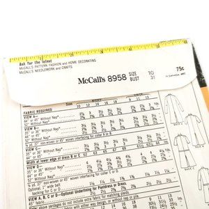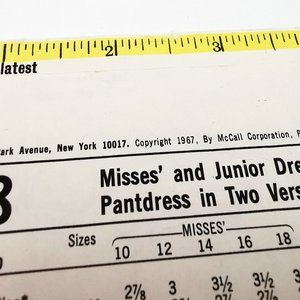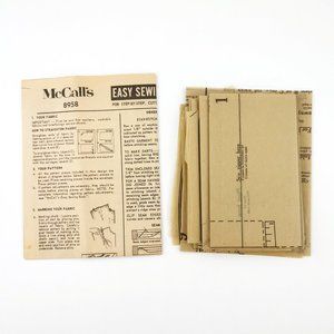 This McCall's sewing pattern number 8958 is for THAT dress. You'll be able to make either an A-line dress with an inverted pleat at the centre back and front or one that has, get this, a pair of shorts hidden behind the pleat. On the pattern, they refer to option 2 as a pantdress, but it's basically a jumpsuit masquerading as a dress. All 9-pieces have been ironed, folded, and are ready to go. The envelope is in good condition. Peep the images and infographic for more details.