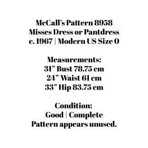 Late 60s Mod Scooter Dress or Pantdress McCalls Sewing Pattern 8958 Bust 31