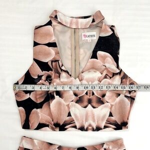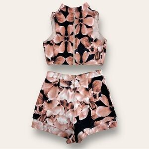 L’atiste By Amy Two Piece Floral Set High Rise Shorts Crop Top Navy Pink