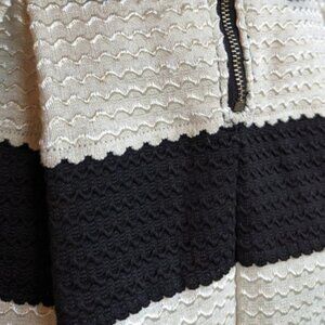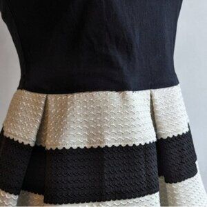 L'atiste by Amy textured pleated black & white striped colourblock a-line fit & flare dress
