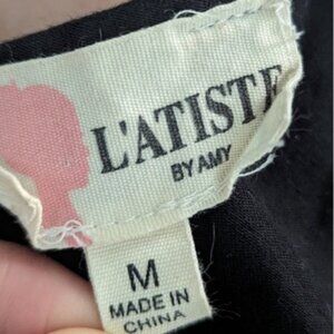 L'atiste by Amy textured pleated black & white striped colourblock a-line Dress