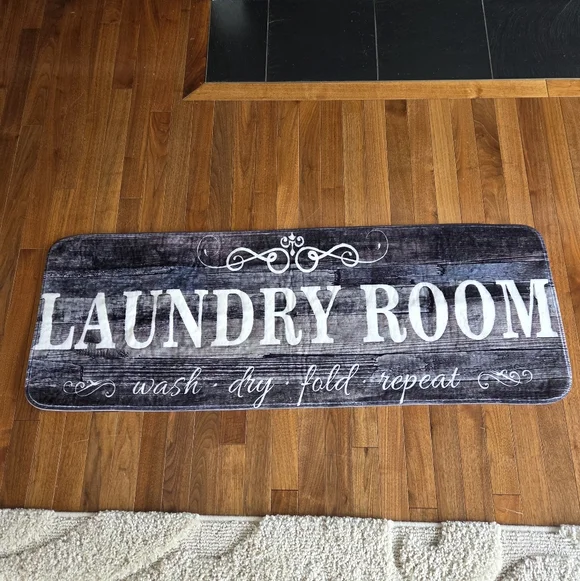Enhance your laundry / mudroom decor with this stylish farmhouse styled mat. Soft, foam like rug is easily washed and maintained. Its elegant design adds a touch of sophistication to any space.