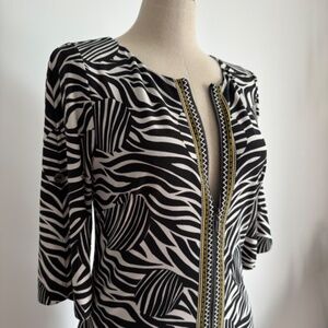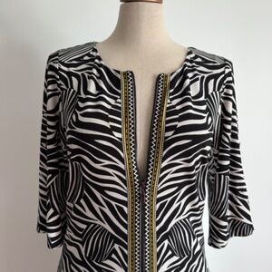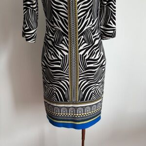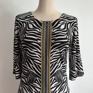 Laundry - Black and White Zebra Print Dress - Slip On - Zipper in font - Midi Dress - 3/4 length Sleeves - Excellent pre-owned condition - like new